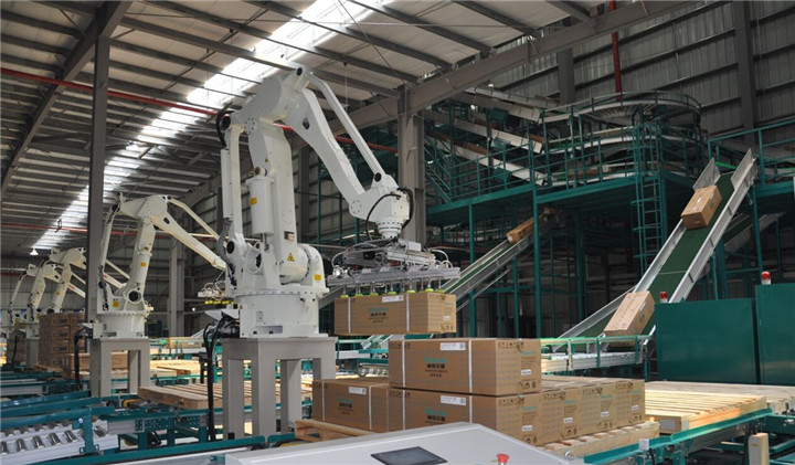 (四)自動化下線機:通過機器人完成自動夾取產(chǎn)品、自動堆碼、自動取夾板等操作,全過程無人化操作,可滿足產(chǎn)品質(zhì)量在150KG內(nèi)的自動堆垛,安定效率高。