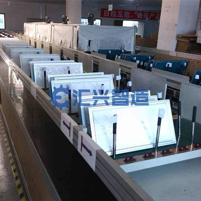 傳統(tǒng)的側(cè)面發(fā)光的LED面板燈只需將LED燈條用雙面膠固定于燈盤側(cè)面,現(xiàn)在越來越多企業(yè)選擇底部發(fā)光或者說正面發(fā)光的設(shè)計(jì),而這種設(shè)計(jì)需要將LED燈條通過膠水將其粘接固定于燈盤底部,有些工廠貼4條,6條,8條,或者更多,取決于每個公司產(chǎn)品的設(shè)計(jì),無論何種設(shè)計(jì),都涉及到打膠貼燈條的工序,這一工序如果通過人工來實(shí)現(xiàn),會出現(xiàn)打膠不均勻,速度慢,無法達(dá)到批量化生產(chǎn)的要求,耗費(fèi)較高人力成本的同時,打膠粘接質(zhì)量也無法滿足產(chǎn)品質(zhì)量要求,所以引入自動點(diǎn)膠機(jī)勢在必行。匯興智造根據(jù)市場需求,研發(fā)設(shè)計(jì)了此款LED面板燈多頭自動點(diǎn)膠機(jī)。