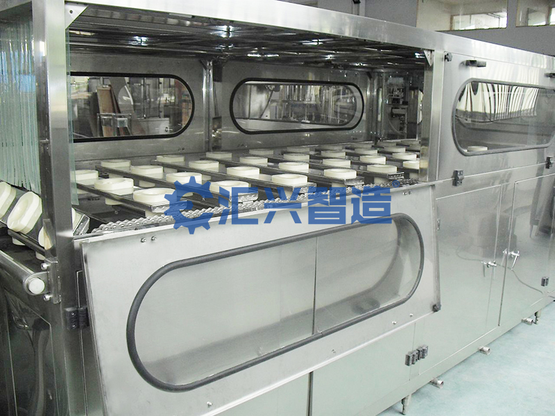 沖瓶機構(gòu)整體由SUS304不銹鋼焊接、組裝而成。瓶夾采用整體式結(jié)構(gòu),每一只瓶夾都是由一整塊不銹鋼材料,經(jīng)過加工中心加工而成。