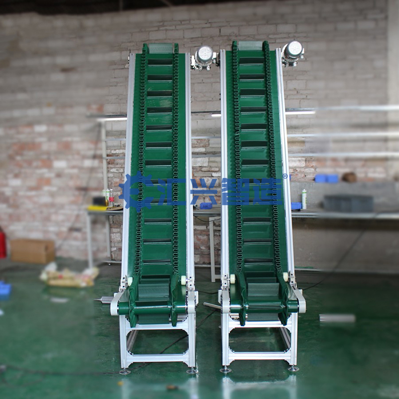 皮帶機(jī)結(jié)構(gòu)形式有:槽型皮帶機(jī)、平型皮帶機(jī)、爬坡皮帶機(jī)、轉(zhuǎn)彎皮帶機(jī)等多種形式,輸送帶上還可增設(shè)提升擋板、裙邊等附件,能滿足各種工藝要求。輸送機(jī)兩側(cè)配以工作臺(tái)、加裝燈架,可作為電子儀表裝配,食品包裝等皮帶機(jī)裝配線。