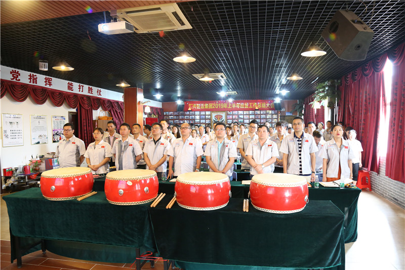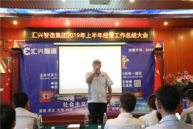 大會最后一項議程由董事長鐘輝作2019年上半年經(jīng)營工作總結(jié)以及2019下半年工作部署。鐘董圍繞公司的軟實力打造和硬實力建設,要求全體干部和職工在下半年要以只爭朝夕的緊迫感和使命感,狠抓落實“258行動計劃”?!緟R興智造258行動計劃:2:堅持企業(yè)硬實力和品牌軟實力兩個基本點,堅持設備智造和配件銷售兩條腿走路,堅持國內(nèi)市場和國外市場兩只手發(fā)力;5:主動做好個人的心態(tài)管理、目標管理、時間管理、學習管理、行動管理等五項管理;8:主動發(fā)揚“5+2”、“白+黑”的艱苦奮斗精神,每一位員工都要堅守崗位,既要出工,也要出活,特別是領導干部要帶頭利用晚上1小時進行學習和總結(jié),確保完成2019年集團智能制造板塊2.58億元的經(jīng)營業(yè)績目標!】