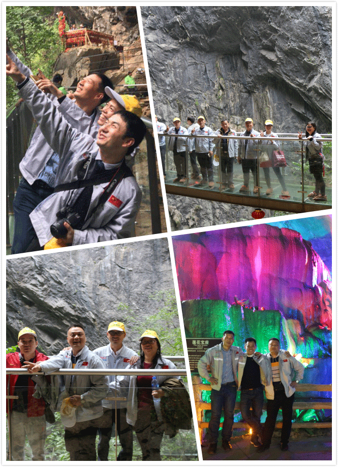洞天仙境內(nèi),還有一景——懸空玻璃棧道,懸空洞內(nèi)絕壁上高達(dá)百米。沿著石梯攀上棧道石臺,更能360度欣賞洞內(nèi)千變?nèi)f化的奇石,“夢想之旅”的團(tuán)隊(duì)成員們走在棧道上,沒有感到步步驚心,而是豪情萬丈,欲與天公試比高。