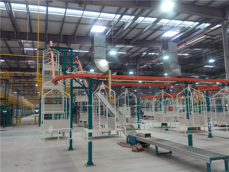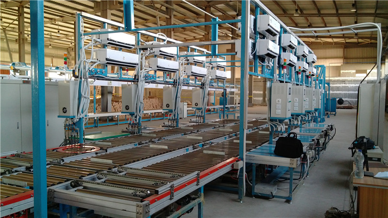 家電組裝線主要包括總裝線、分裝線、工位器具及線上工具等。在總裝線和分裝線上,目前國內(nèi)普遍采用柔性輸送線輸送工件,并在線上配置自動(dòng)化組裝設(shè)備以提高效率。柔性輸送線主要有:摩擦輥道和啟停式動(dòng)力輥道兩種。鏈板式組裝線上的自動(dòng)化設(shè)備主要有自動(dòng)打號(hào)機(jī)、擰緊機(jī)、自動(dòng)翻轉(zhuǎn)機(jī)以及其它專用組裝設(shè)備等,可大大提高鏈板式組裝線的組裝能力。目前,鏈板式組裝線普遍采用現(xiàn)場總線控制方式,通過現(xiàn)場分布I/O統(tǒng)一控制組裝線的運(yùn)行及完成各工位間的通訊。組建現(xiàn)場信息監(jiān)控系統(tǒng)采用以太網(wǎng)等方式,完成組裝線上的信息采集、排產(chǎn)下達(dá)、工位監(jiān)控及組裝提示等功能。