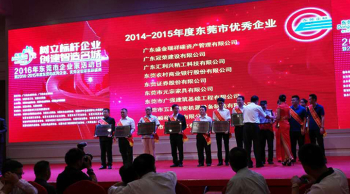 東莞市企業(yè)聯(lián)合會、東莞市企業(yè)家協(xié)會,于2016年5月25日18:30在東莞國際會展大酒店隆重舉行“2015年度東莞市優(yōu)秀企業(yè)、優(yōu)秀企業(yè)家表彰盛典”。匯利興集團“破五關(guān)“脫穎而出,榮獲 “2014/2015年度東莞市優(yōu)秀企業(yè)”。