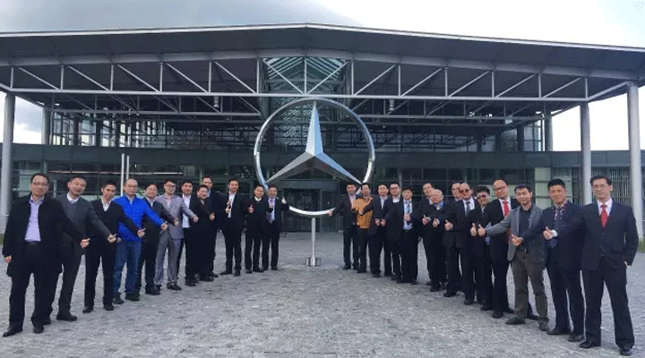 當天下午,考察團去到了梅賽德斯奔馳(Mercedes-Benz)汽車工廠。梅賽德斯奔馳在汽車界的地位就好比電影界的好萊塢,它是世界上最大的豪華轎車生產(chǎn)基地,目前共有員工31000多人,其中技術中心就有8000多名工程師與設計師。本次主要考察參觀機器人自動化s級生產(chǎn)線。(由于生產(chǎn)線禁止拍照,因此照片有限,下附合照一張)
