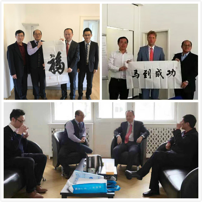 匯興智造鐘董將中國的文化傳到歐洲,將匠心的祝福送到德國,匯興智造機器人事業(yè)部工程師們專門編程的機器人書法作品:「福」「馬到成功」送給廣東省商務廳歐洲辦、博世集團。