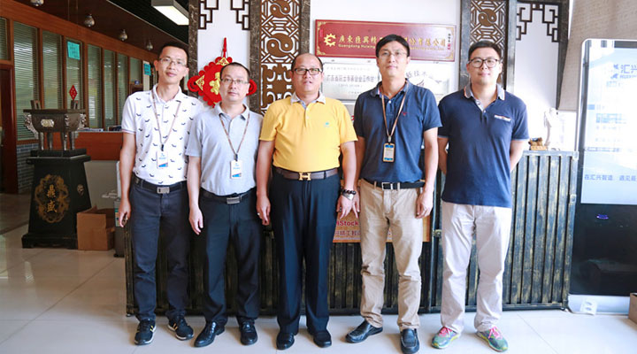 2017年6月28日,東莞市大嶺山鎮(zhèn)工商局王毅局長、袁洪副局長、張股長和鐘股長一行蒞臨廣東匯興精工智造股份有限公司(股票代碼:839258)調(diào)研指導(dǎo)。匯興智造董事長鐘輝對大嶺山鎮(zhèn)領(lǐng)導(dǎo)的到來表示熱烈的歡迎,并陪同他們參觀了匯興智造獨(dú)具特色且富有濃郁文化氣息的工業(yè)4.0智能裝備體驗(yàn)館,隨后雙方就公司的發(fā)展情況等問題展開了深入的交流和探討。