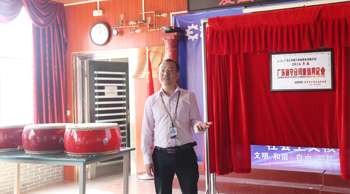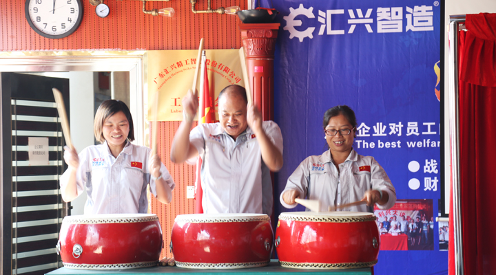 東莞市大嶺山鎮(zhèn)工商行政管理局袁洪副局長,張昕栓股長,匯興智造董事長鐘輝,上市辦辛主任,監(jiān)事長呂常垣,財務總監(jiān)呂漪,行政總監(jiān)黃艷,營銷總監(jiān)楊思等一同舉行簡單而隆重的揭牌儀式。鐘董事長對袁局長的到來表示熱烈歡迎,并且深情感謝大嶺山鎮(zhèn)這片樂土,匯興智造能取得一系列的資質(zhì)和榮譽,離不開政府各級部門認可與肯定,離不開大嶺山這片土壤很好的營商環(huán)境。袁局長在儀式上總結(jié)發(fā)言,“匯興智造是一個非常有朝氣的企業(yè),用士氣鼓來鼓舞士氣,確實令人耳目一新與眾不同,能做到企業(yè)文化和企業(yè)發(fā)展融合在一起,這真的很少見,很有才氣,很有情懷,而且再獲“守重”資質(zhì),更說明公司是一家誠信經(jīng)營非常有前景的好企業(yè)?!睆V東省守合同重信用企業(yè)”榮譽稱號是對企業(yè)資質(zhì)規(guī)模一種肯定,其實更是金字招牌,我們也希望工商部門與企業(yè)有更多的互動。