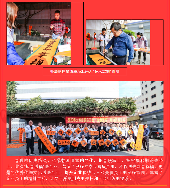 翰墨飄香送春聯(lián),文化進(jìn)企暖人心——鎮(zhèn)總工會(huì)來匯興開展“迎春送?!爆F(xiàn)場揮春活動(dòng)