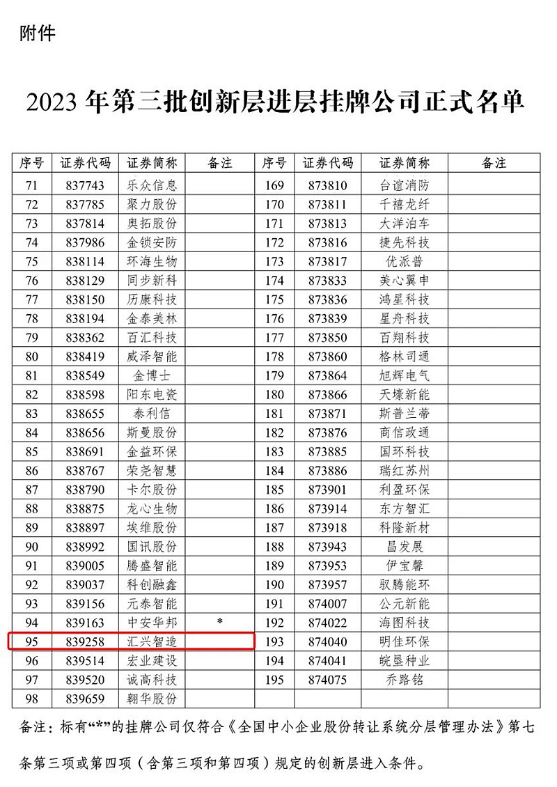 喜訊!匯興智造成功進(jìn)入新三板創(chuàng)新層