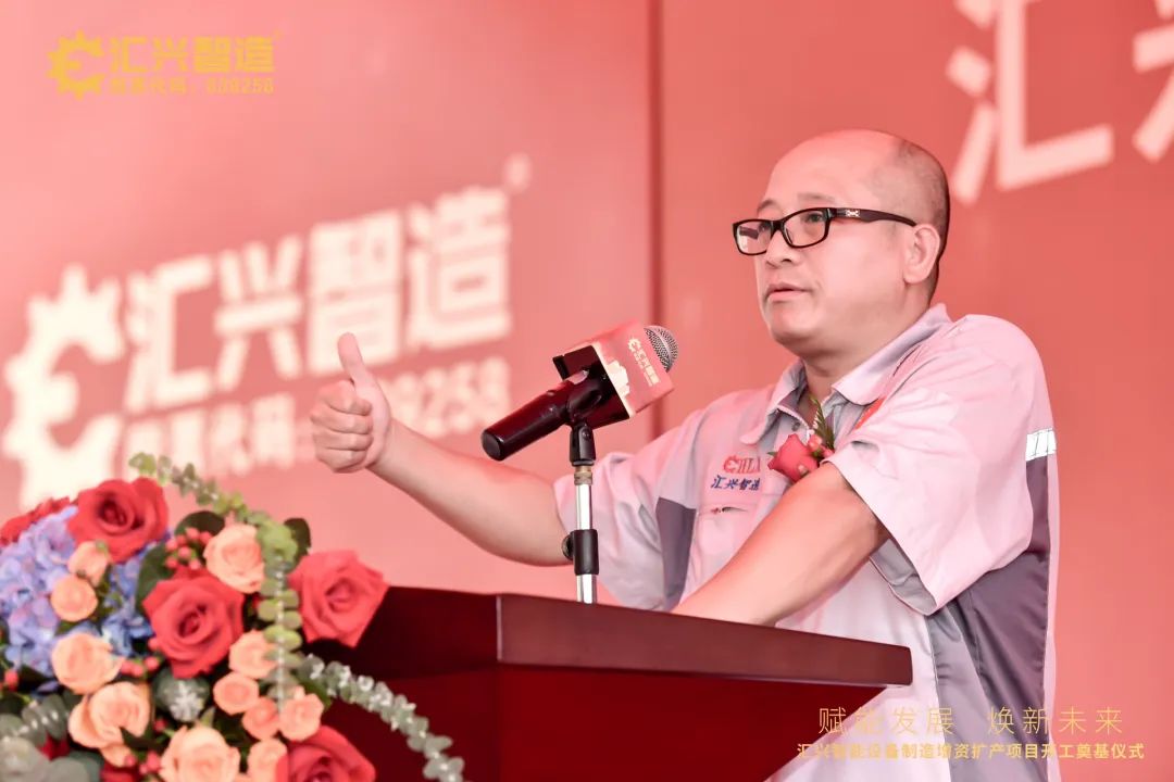 臨參加開工儀式現(xiàn)場的來賓朋友表達(dá)了由衷的感謝和崇高的敬意,其次對匯興智能設(shè)備制造增資擴(kuò)產(chǎn)項(xiàng)目進(jìn)行了相關(guān)介紹,項(xiàng)目總投資3億元,用地面